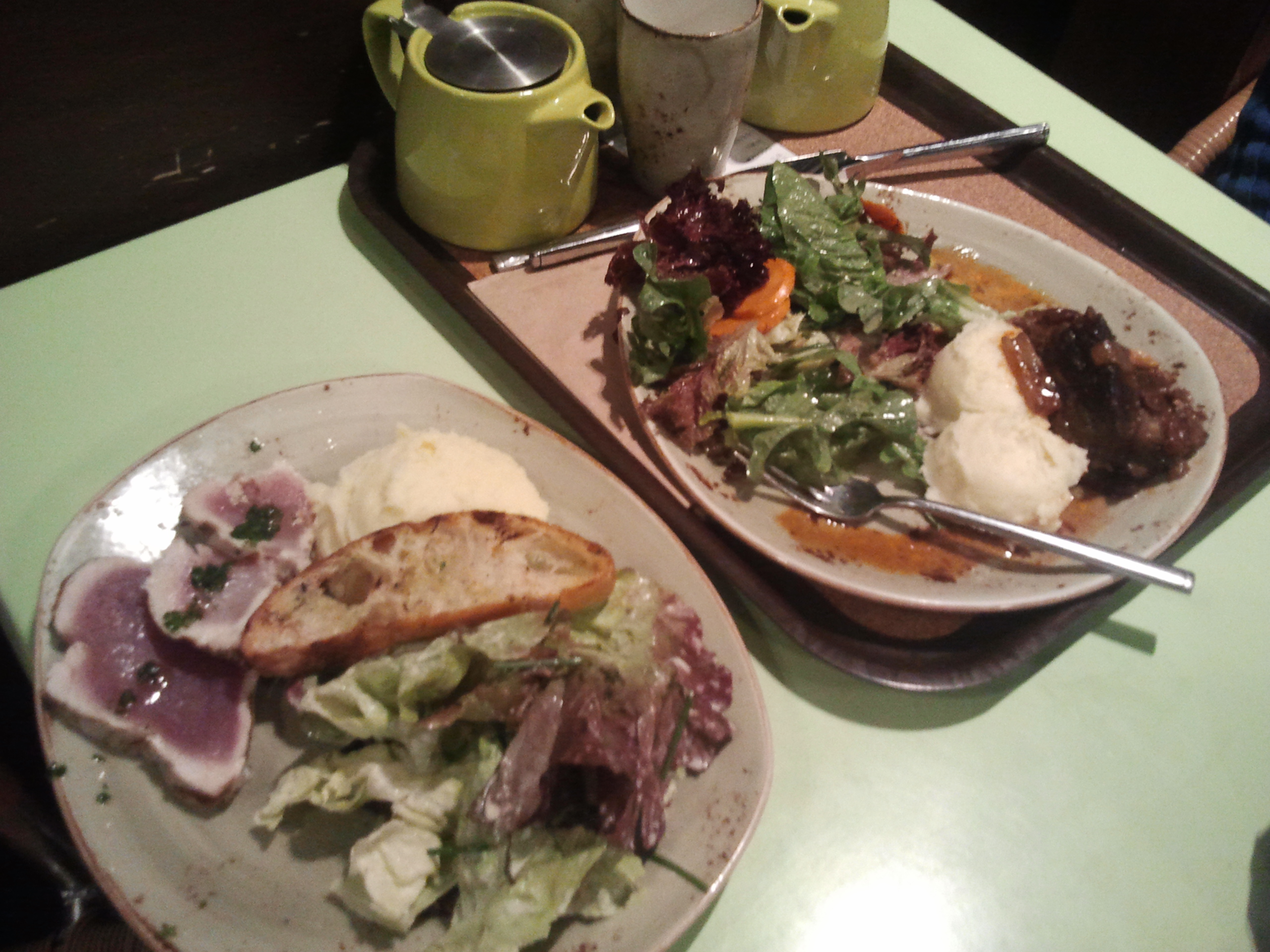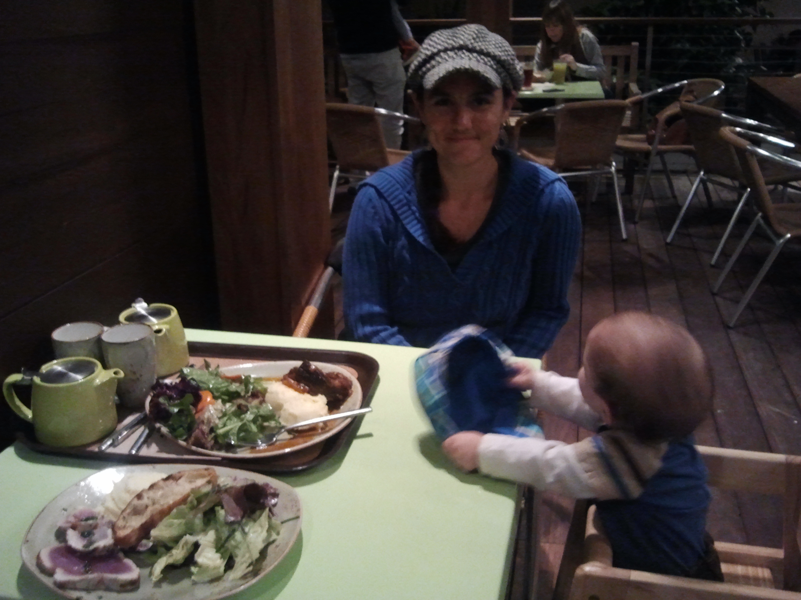 Shannon had the braised beef. Little B had my mashed potatoes and some of our meat since it was soft enough for his toothless gums. The food was great and the price not too high for fancy and local/organic food. I’d recommend it.