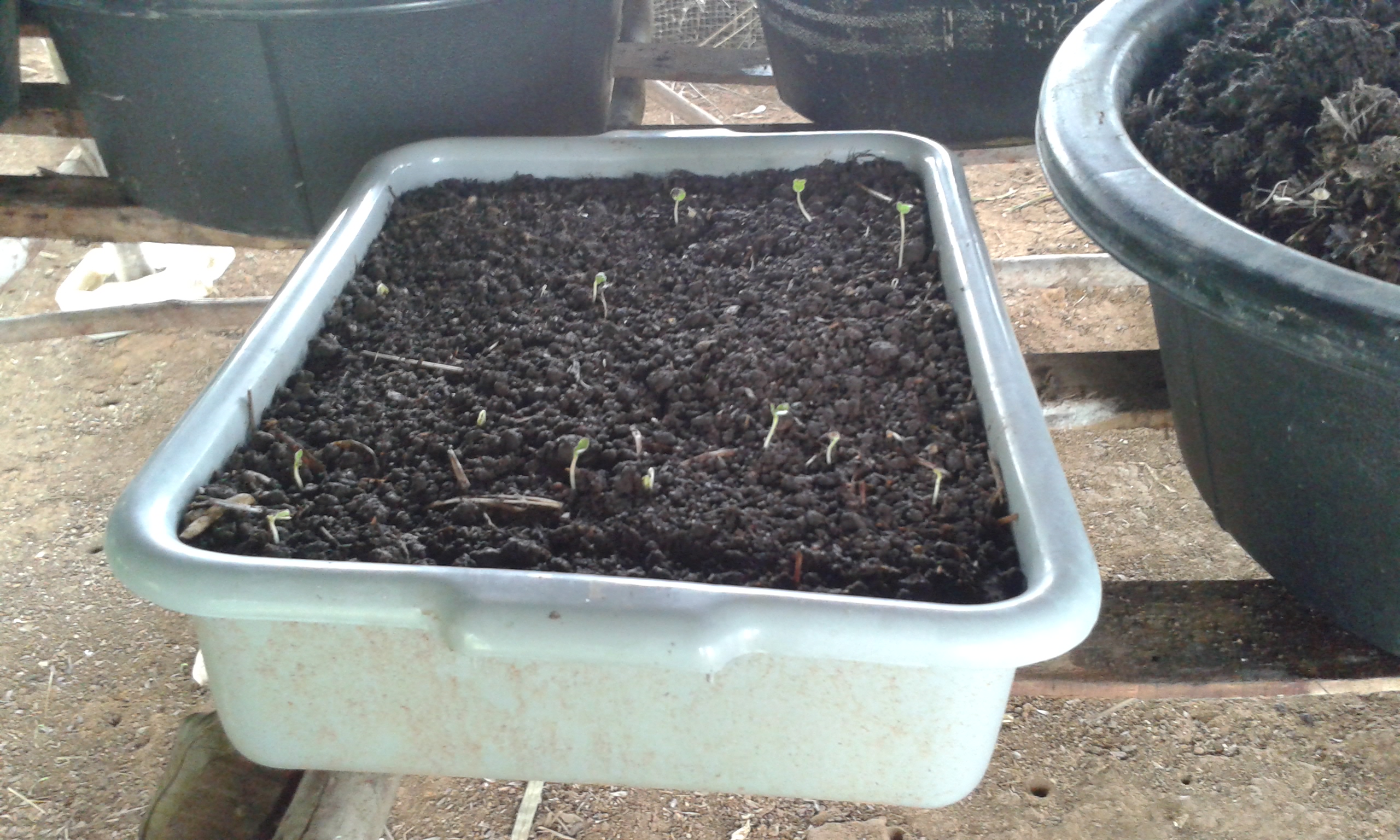 Radish sprouts. The started out well. I just hope they don’t all get eaten before they give us seed.