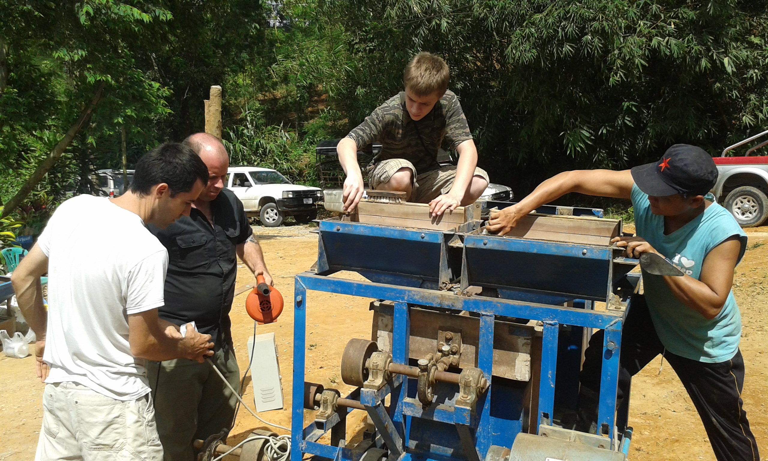 After a night of talking and catching up on old times, we got up the next morning and went to work disassembling the rice mill. The base had literally been cemented into place. This was by far the hardest part of taking down the mill. We all took turns chipping away at the concrete in between removing the nuts and bolts of the mill itself. After about four hours of non-stop work, the mill was apart, the base free of the concrete, and everything loaded into the back our two trucks. It was time to move on to Chiang Mai.