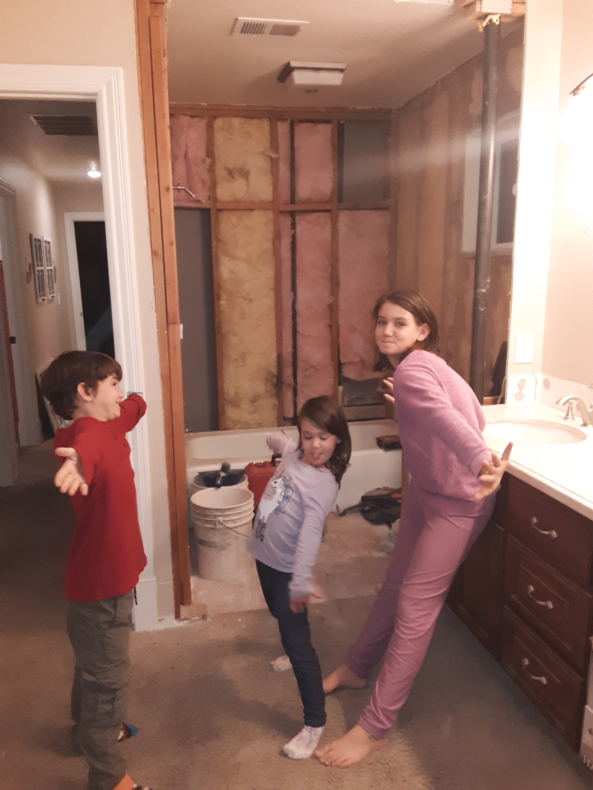 After all the outdoor projects from the spring, in the summer, we turned our attention to the indoors with its cooler temperatures and cleaner air. Shannon and the kids repainted the girls’ bedroom, the downstairs bathroom, and the living and family rooms, including one of the brick fireplaces. Mike installed laminate planking floors in the living and family rooms and painted the kids’ bathroom.